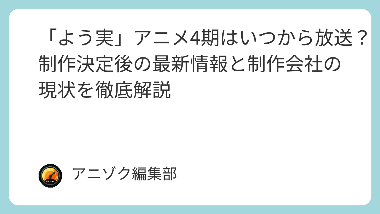「よう実」アニメ4期はいつから放送?制作決定後の最新情報と制作会社の現状を徹底解説