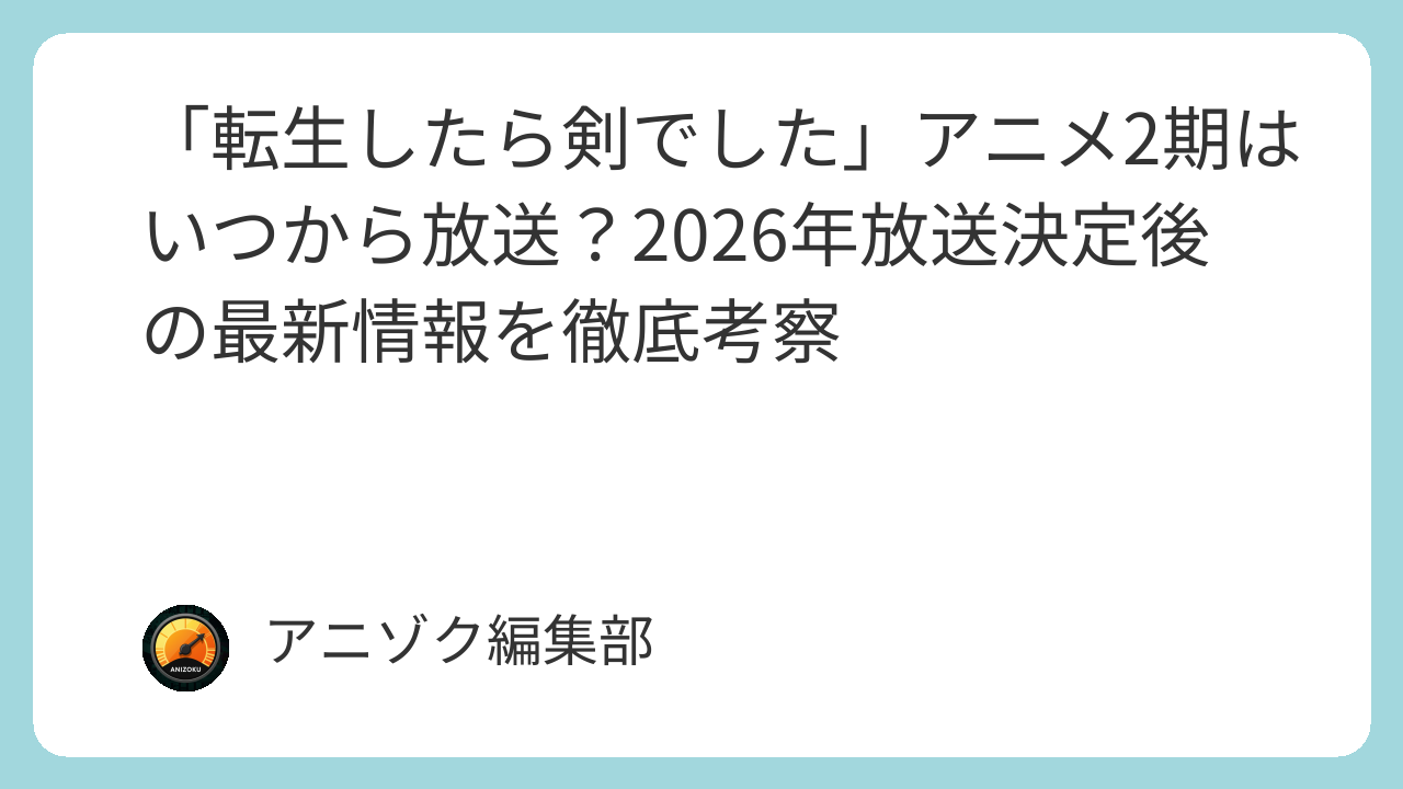 - 現状: アニメ「転生したら剣でした」2期の制作は公式に決定済み。放送は2026年予定。