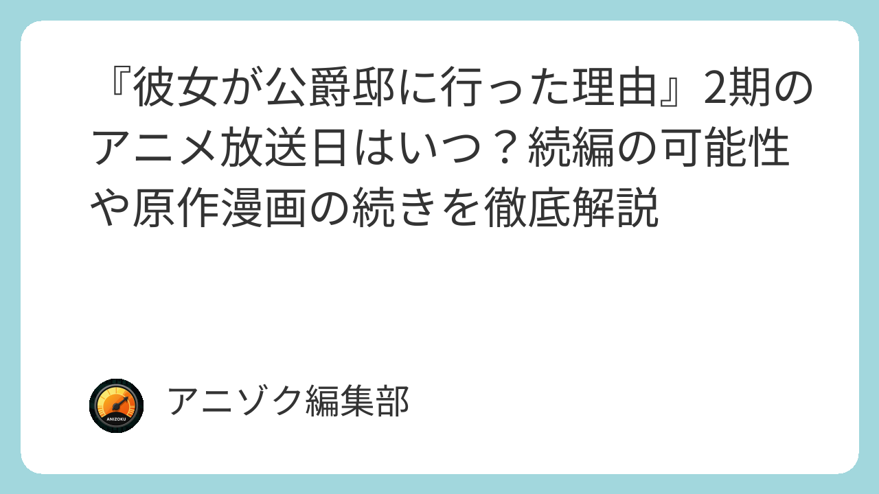 彼女が公爵邸に行った理由 2期や今後の展開に関するよくある質問