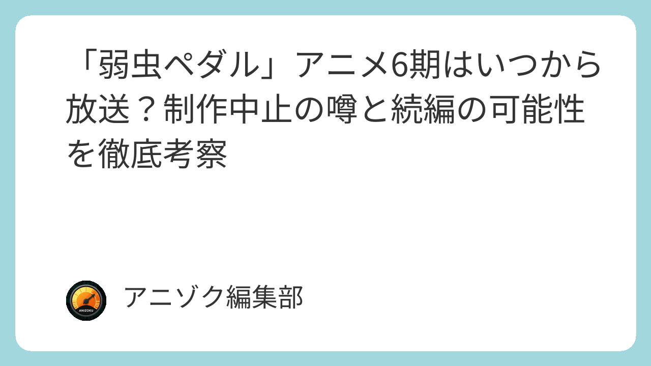 - 現状: アニメ「弱虫ペダル」6期の公式な制作発表はまだない。