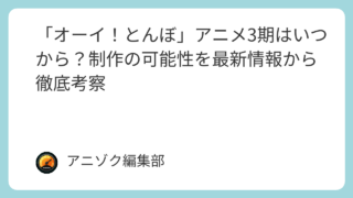 - 放送時期予想: もし制作される場合、2027年以降が現実的なライン。